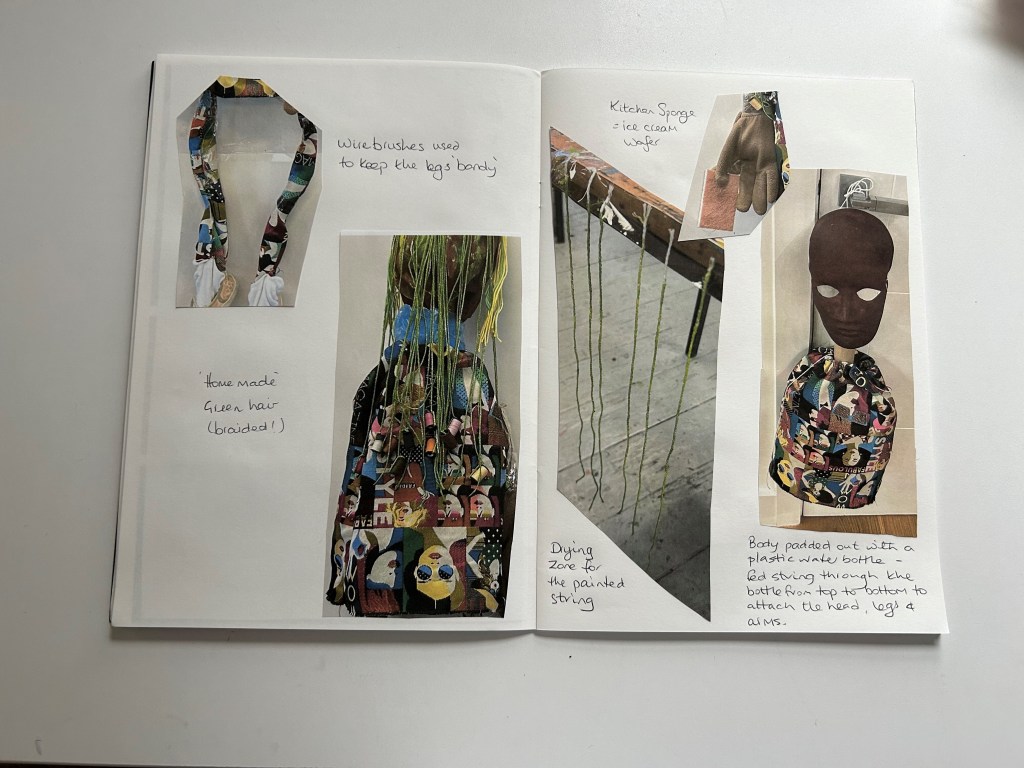The careful planning was something I thought I did well and showed through in the end result. The only thing I might have done differently would have been to consider being able to ‘walk’ all around the model. To achieve this in the lesson I made use of some studio items to make the reverse of the head, and more hair. The items I had prepared for the arms body and legs were already 3D from all angles.