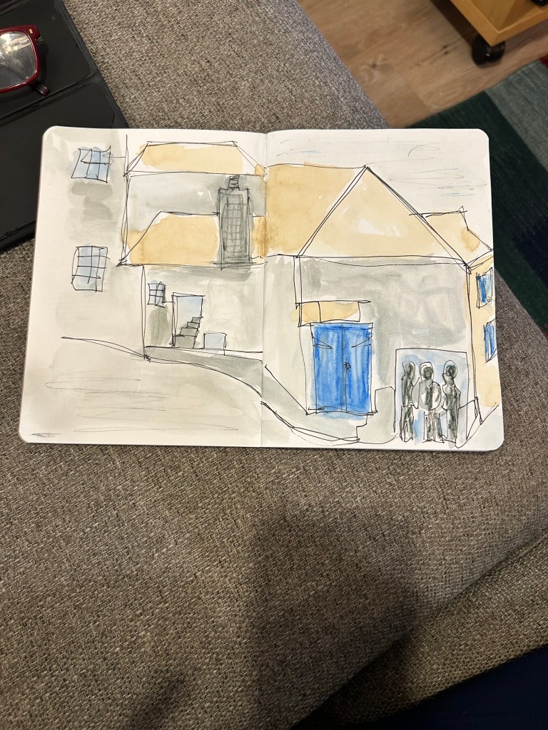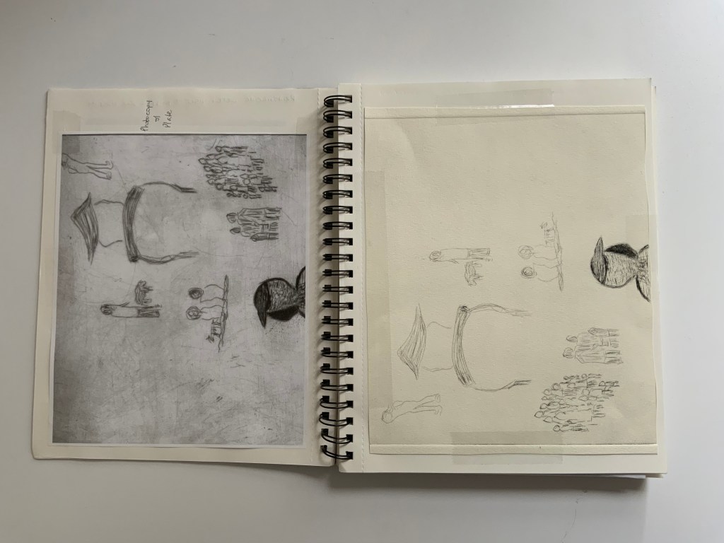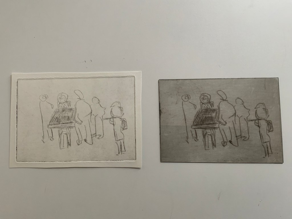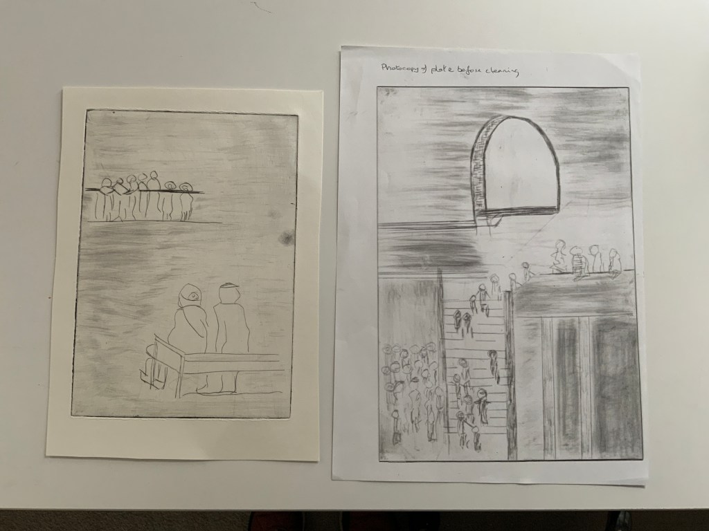 I used the same skills in week one of printmaking when sketching people at the Imperial War Museum