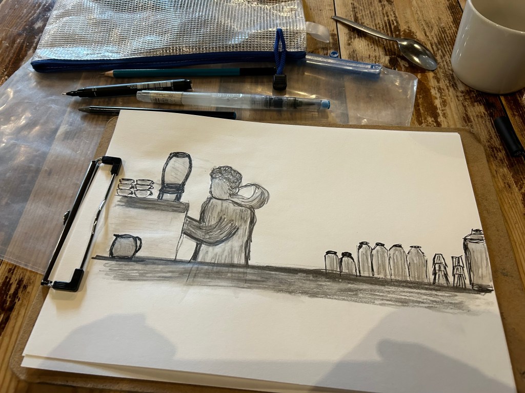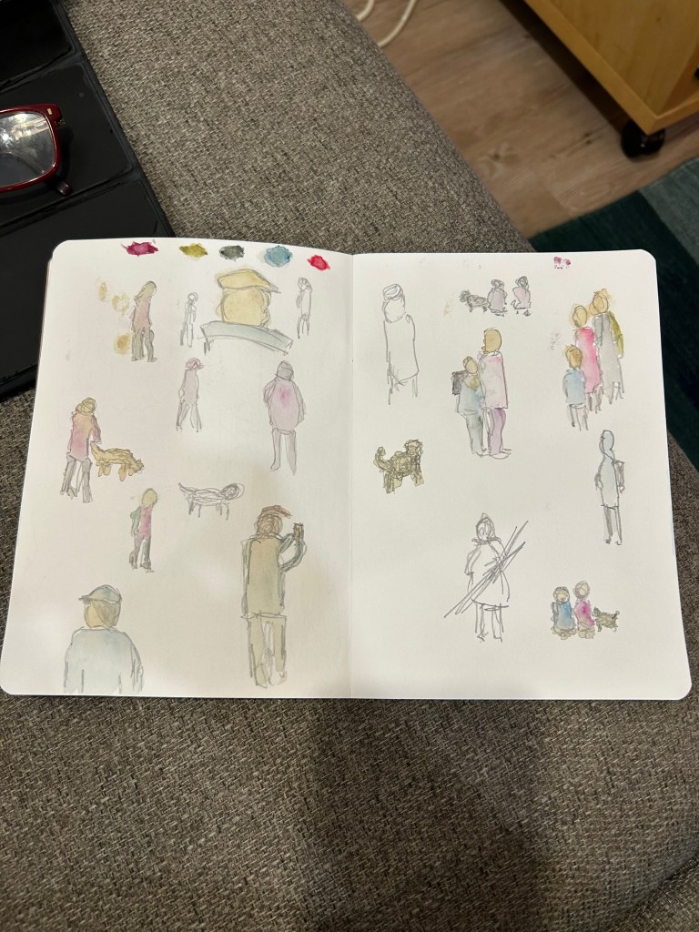 Additional sketching of people formed part of the printmaking classes, which was also very useful preparation for the life drawing class. See end of this post or the printmaking post for images.