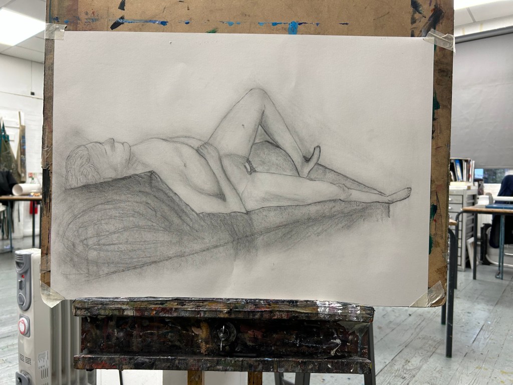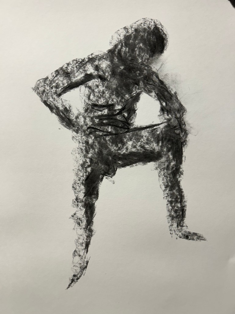 My expectations were low when the class started. Although I made mistakes I learnt a lot about the technicalities and structure of the human form and made a determined attempt at a realistic representation of Kit (the model).