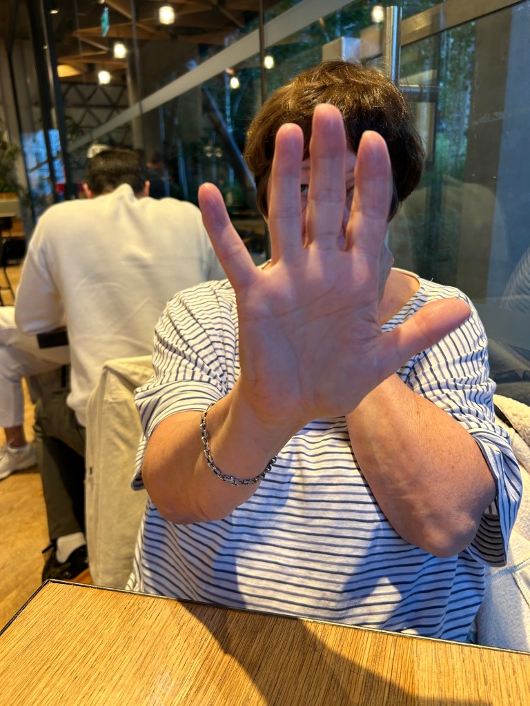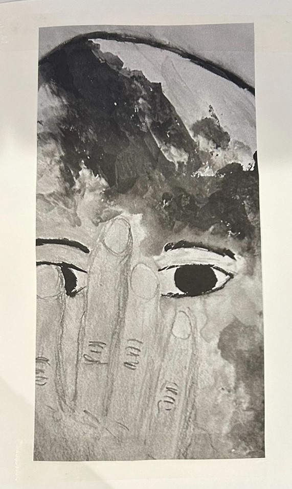 3. Hiding behind a hand or hands, covering up and seeking to become invisible