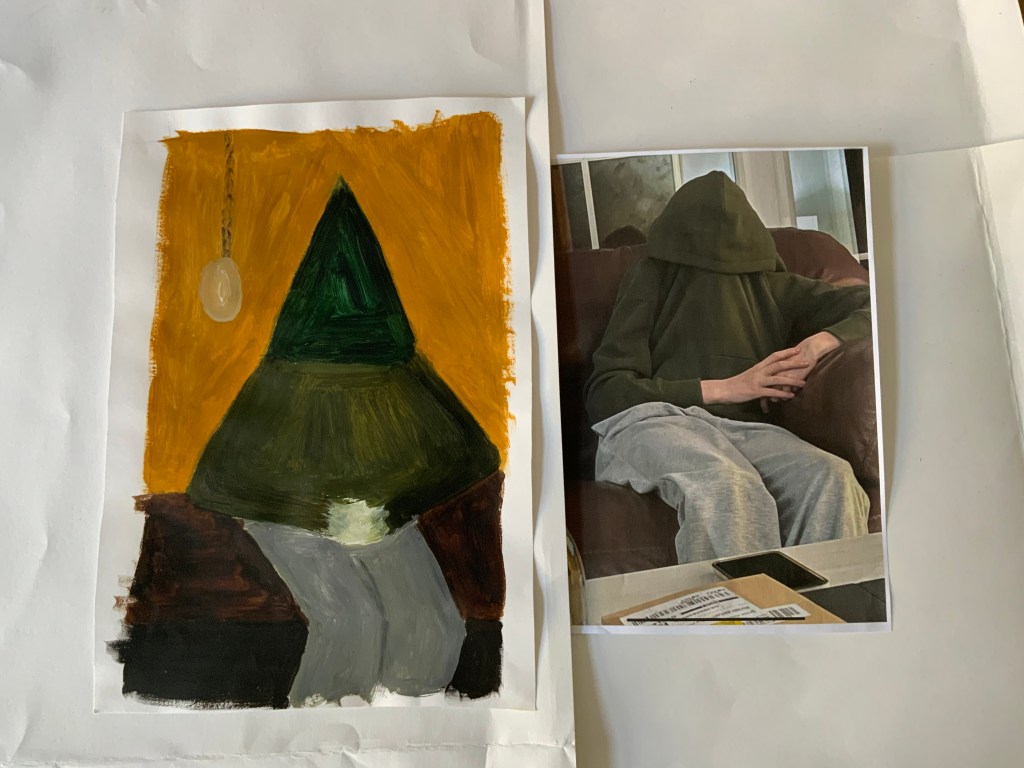 Some time ago I painted a series of pictures from a photograph of my grandson, they developed during the process into what would appear to be an interrogation scene. At the time I had no knowledge of Philip Guston, the end result was uncannily similar to the work of Guston, who I now take inspiration from.