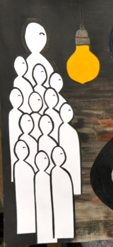 For the bulb I was inspired by Philip Guston. In his work he uses everyday items and often includes a light bulb. He also portrays work with a KKK connection which could indicate some sort of interrogation.