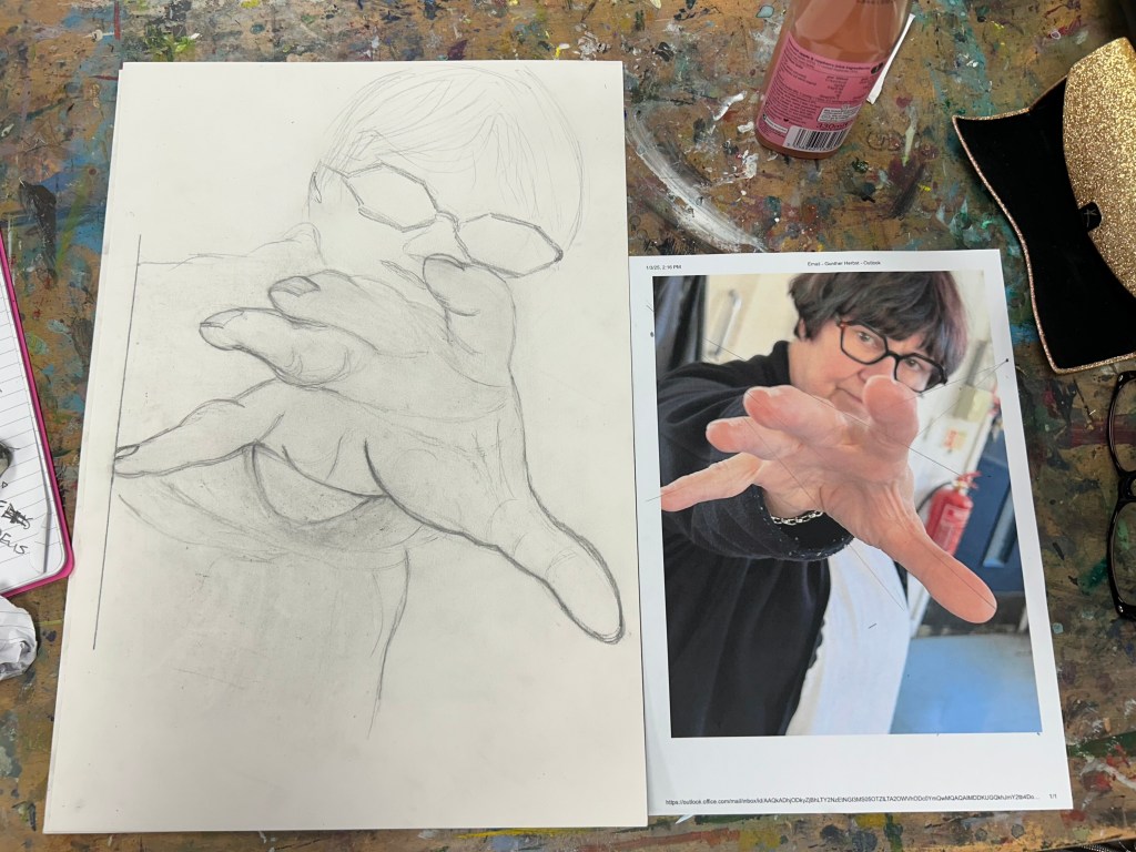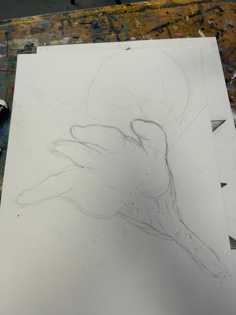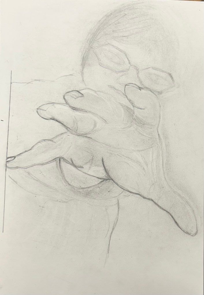 Once the basic shape of the hand had been drawn I could then rub out the guidelines to finish the drawing.