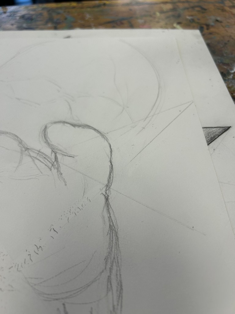I then created the same guidelines in faint pencil on the paper in the same proportion to the photo guidelines.