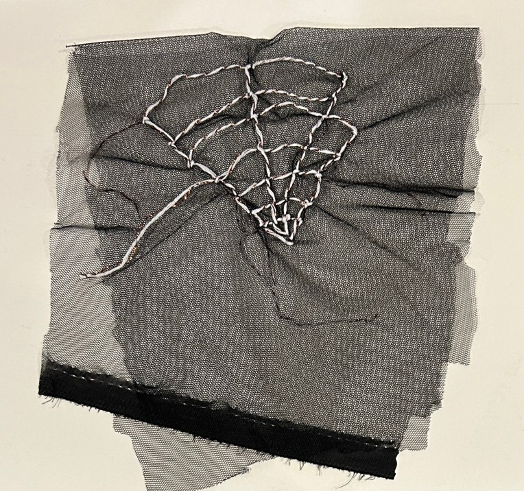 An small sample of needlework with string as opposed to cotton thread was prepared as a test. The end result was not suitable for the project. The lines of the web were much bolder and thicker, I preferred the cotton thread