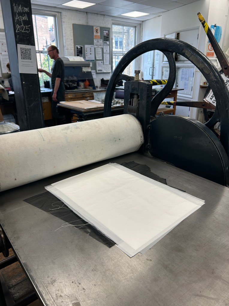 The first attempts at printing were not very successful. It needed a steep learning curve as I had no previous experience of printing using a material printing ‘plate’.