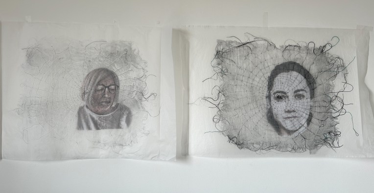 The idea of printing onto the tissue paper also inspired the pictures using tissue paper prints with faces behind